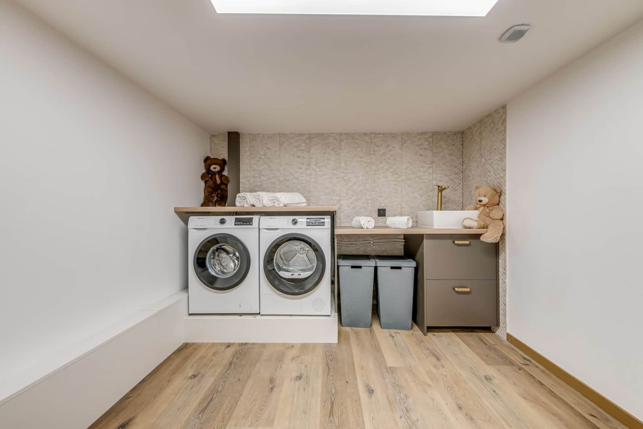With 350 sqm across 3 levels, the chalet accommodates up to 15 guests in 7 en-suite bedrooms. For larger groups, the Little Riva extension offers additional rooms, creating a combined 400 sqm chalet for up to 20 guests – perfect for big families, groups of friends, or company retreats.